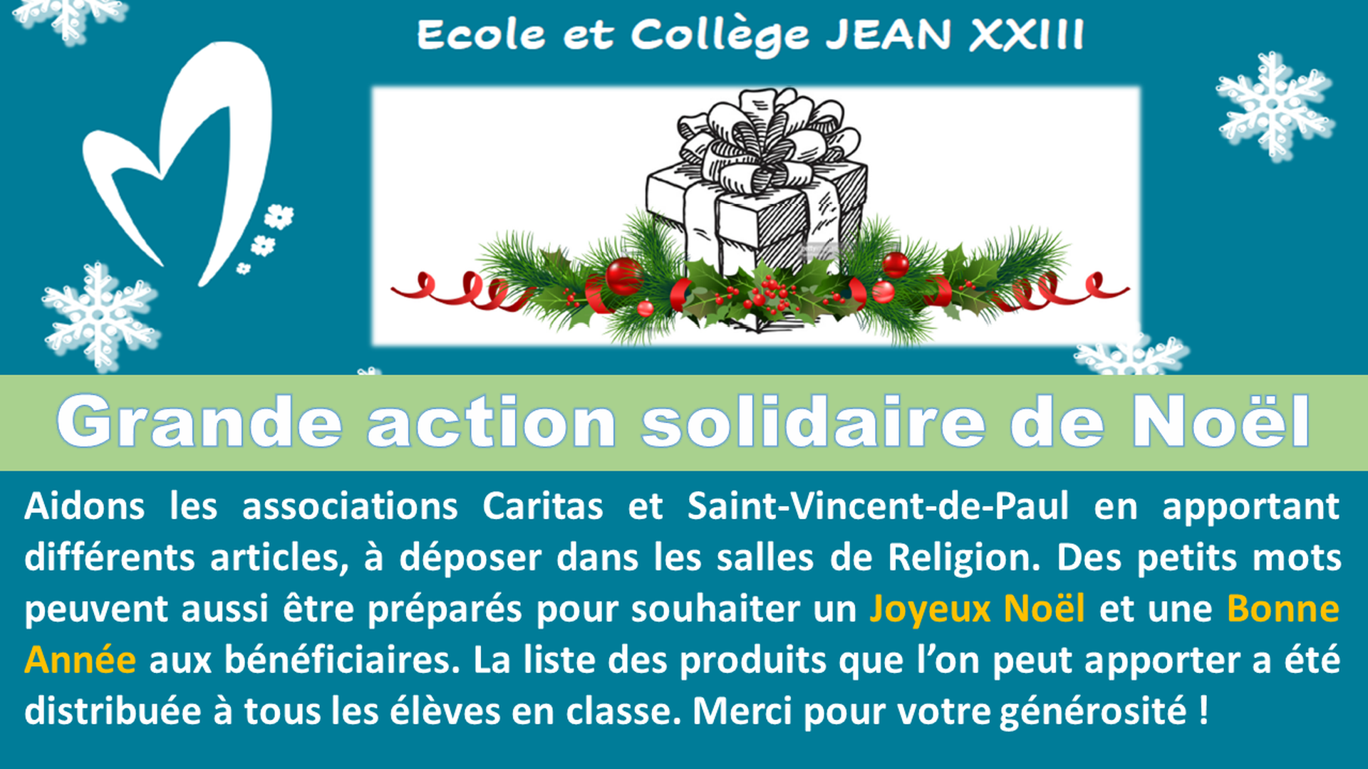 Pour les enfants malades des hôpitaux 179 kg de bouchons et des classes primées Le "Challenge Bouchons" initié début octobre a eu un franc succès. Plus d'une vingtaine de classes ont participé avec un record de près de 18 kilos récoltés par la 6ème A. Photos, classements et explications sur la page de la pastorale scolaire. Publié le 06/12/2022 ◢ |