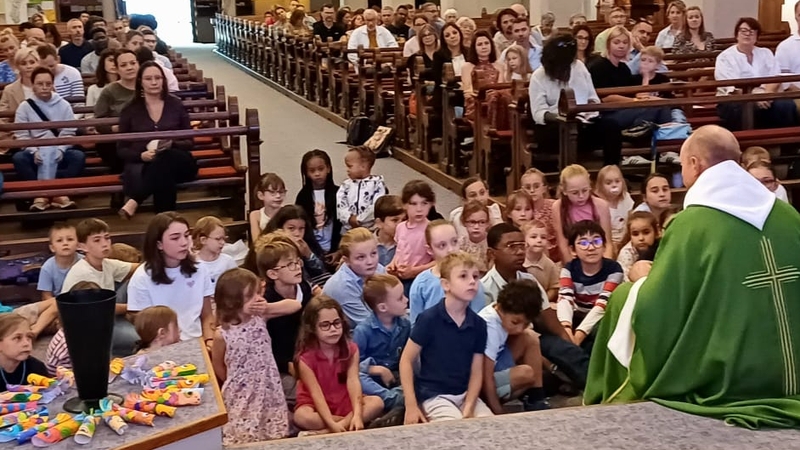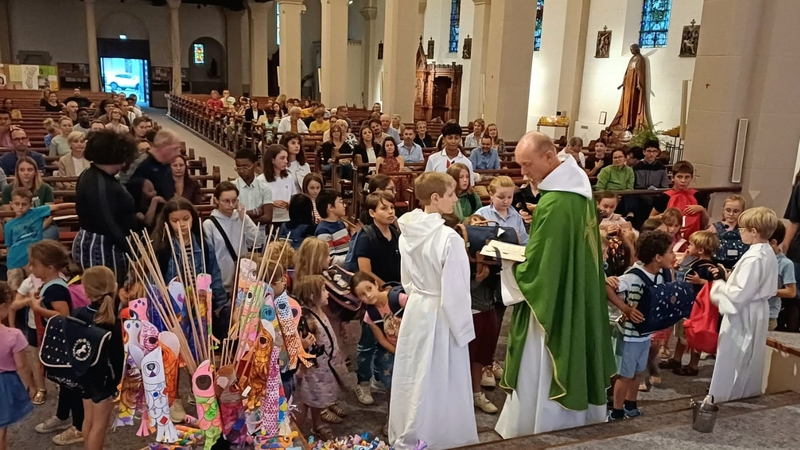 La traditionnelle messe de rentrée de l'ensemble scolaire Jean XXIII s'est tenue cette année en l'église Saint-François d'Assise à Mulhouse. En cette fin d'après-midi d'un samedi ensoleillé, le foule était au rendez-vous : parents et enfants, de l'école et du collège, ainsi que le personnel et les enseignants ont été nombreux à répondre à l'appel !