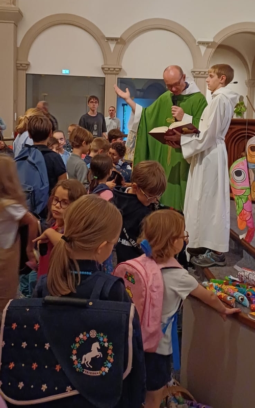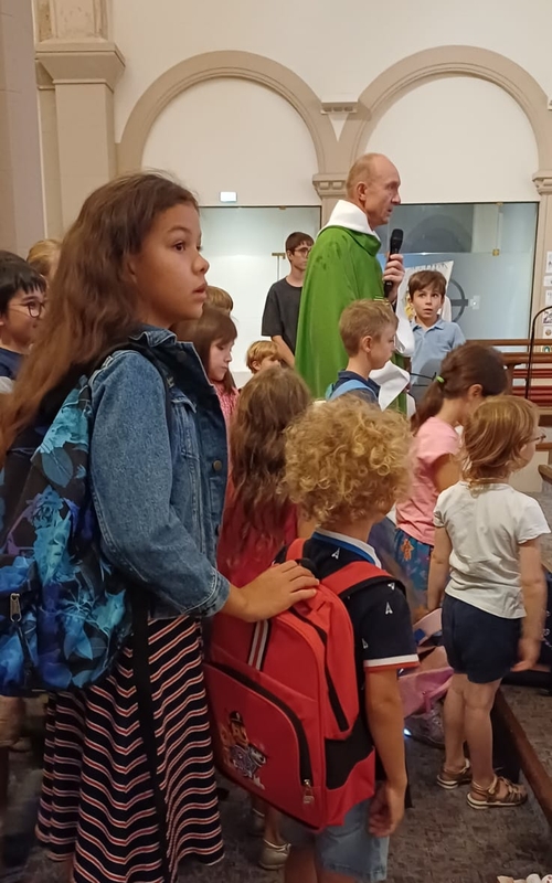 Comme chaque année, une messe de rentrée avec bénédiction des cartables est organisée pour tous nos élèves de la maternelle au collège. Merci au Père Iulian pour la très belle célébration, à Elisabeth Hassler pour la préparation et les magnifiques décors, ainsi qu'à la paroisse St-Barthélémy de Dornach pour l'accueil.