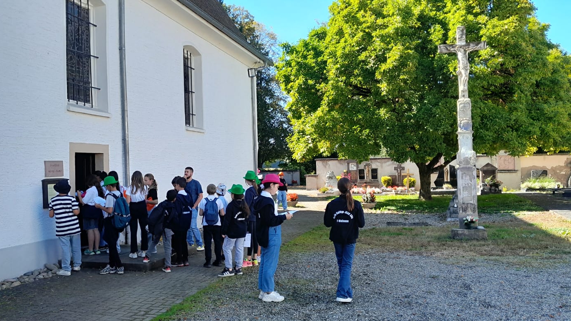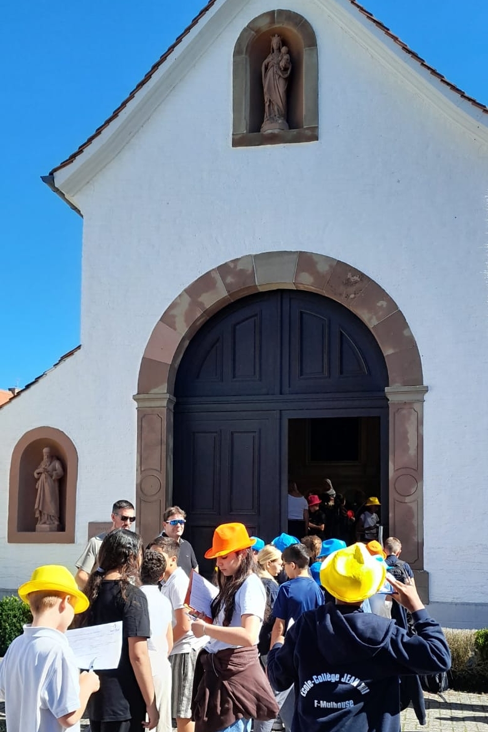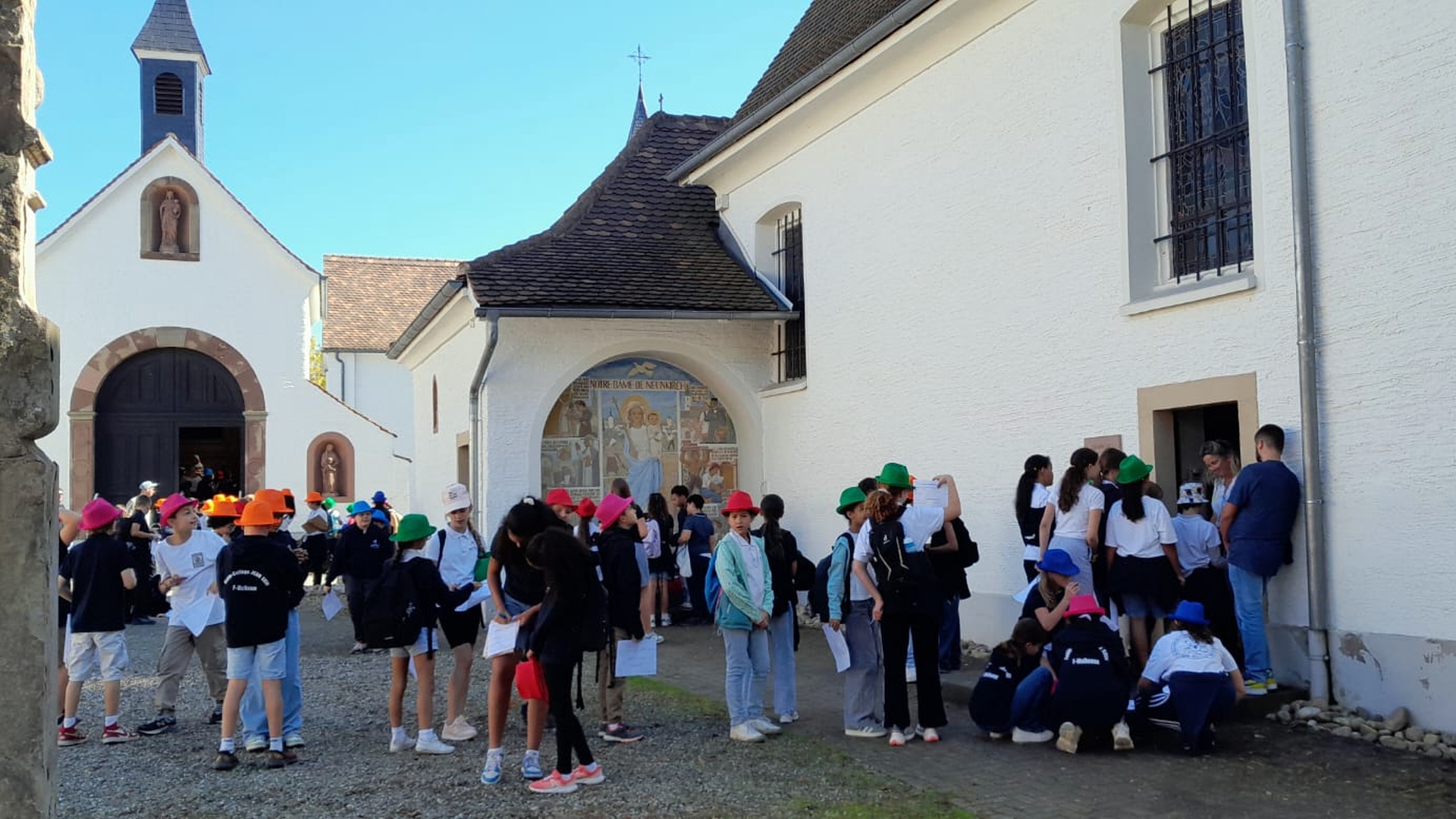 Après le piquenique, à l'ombre ou au soleil selon le choix de chacun, les élèves ont participé à différentes activités ludiques dans ce lieu de pèlerinage reconnu. Découvrir les lieux au travers d'un questionnaire, le tout dans une belle ambiance paisible, loin du tumulte mulhousien : voilà un beau programme pour l'après-midi. Les jeunes ont notamment appris que les chrétiens se retrouvent dans ce lieu depuis plus de 700 ans et que la Chapelle consacrée à Notre-Dame a été construite en 1455, comme en témoigne l'inscription sur le linteau.