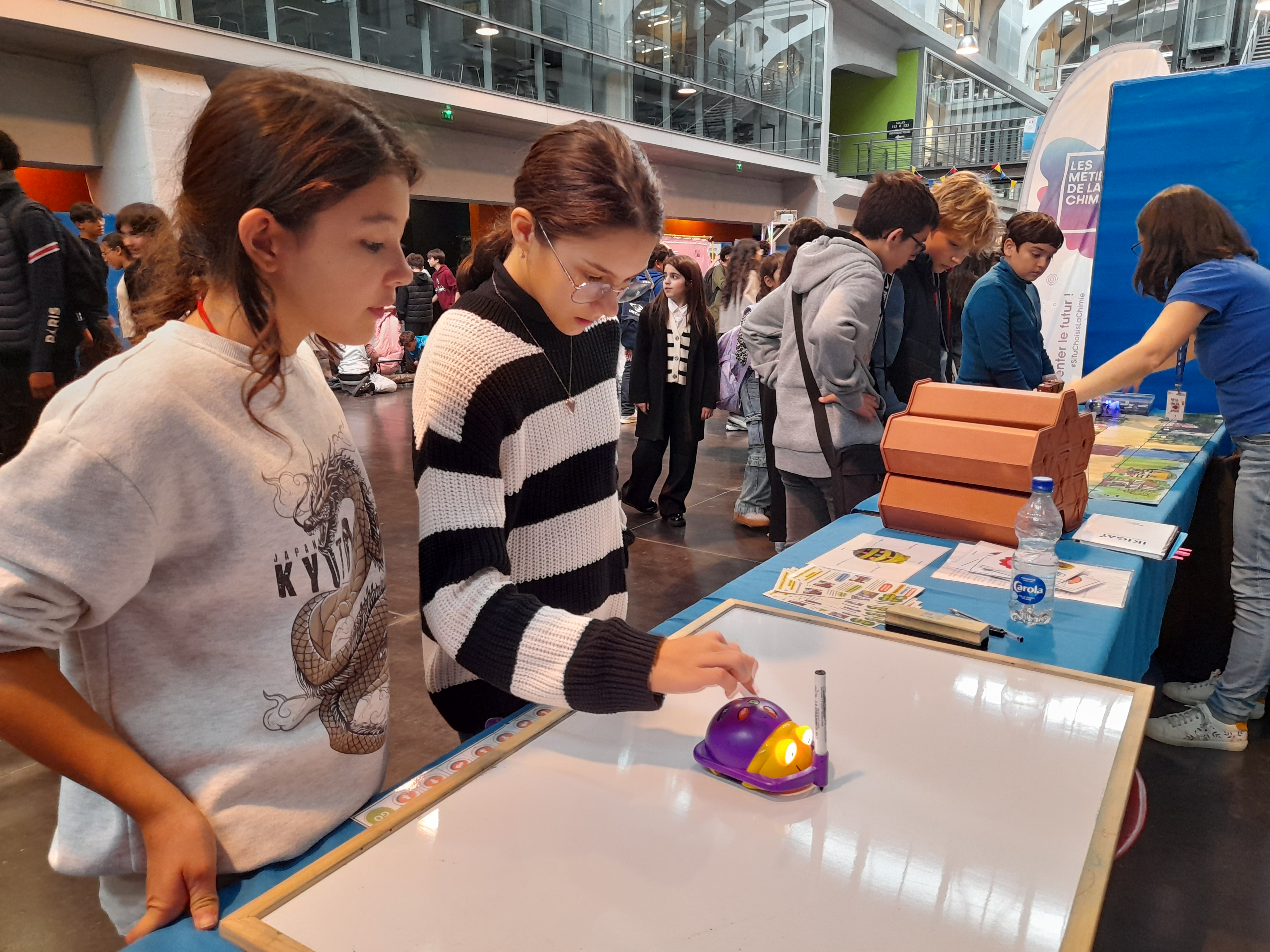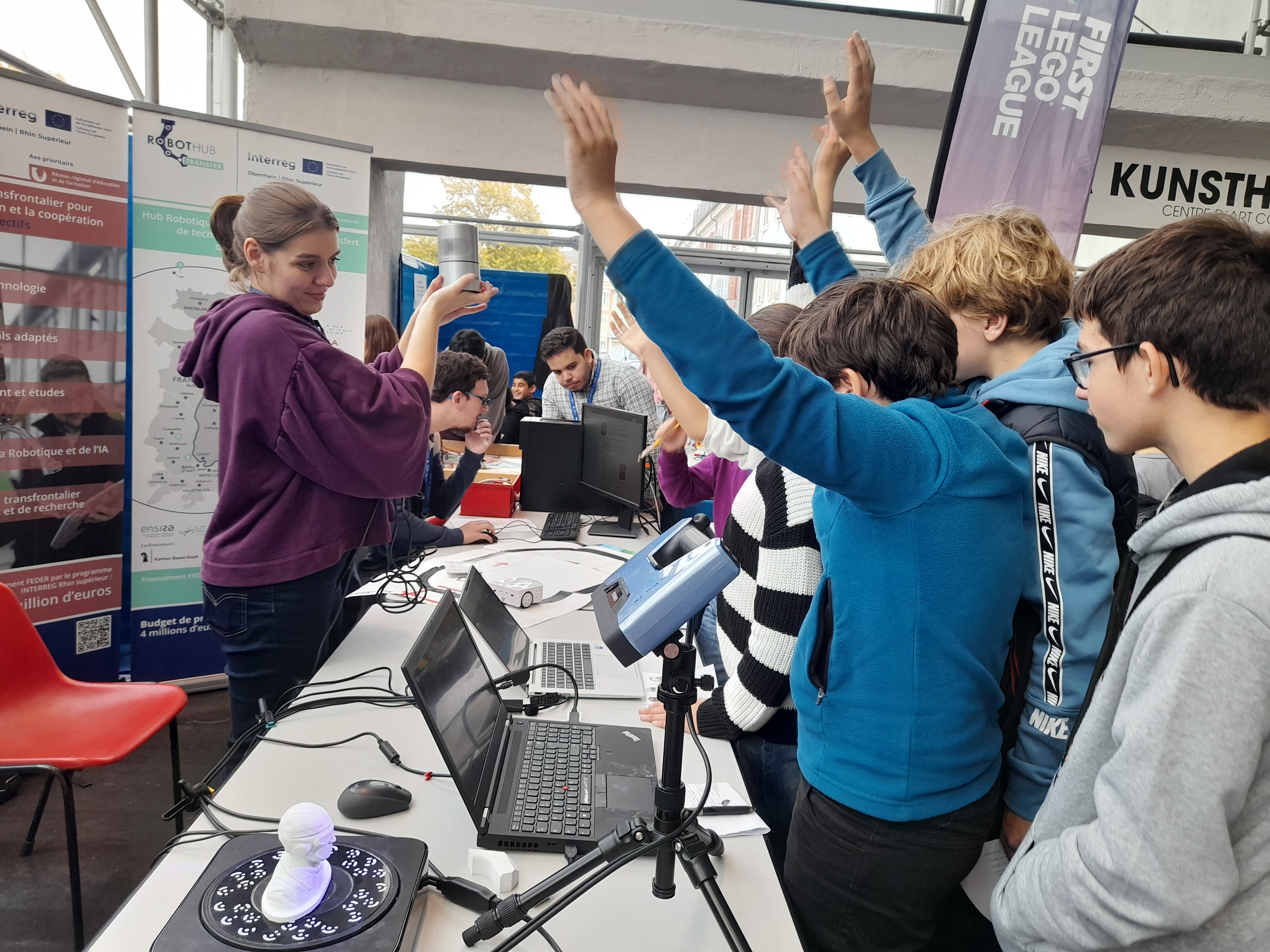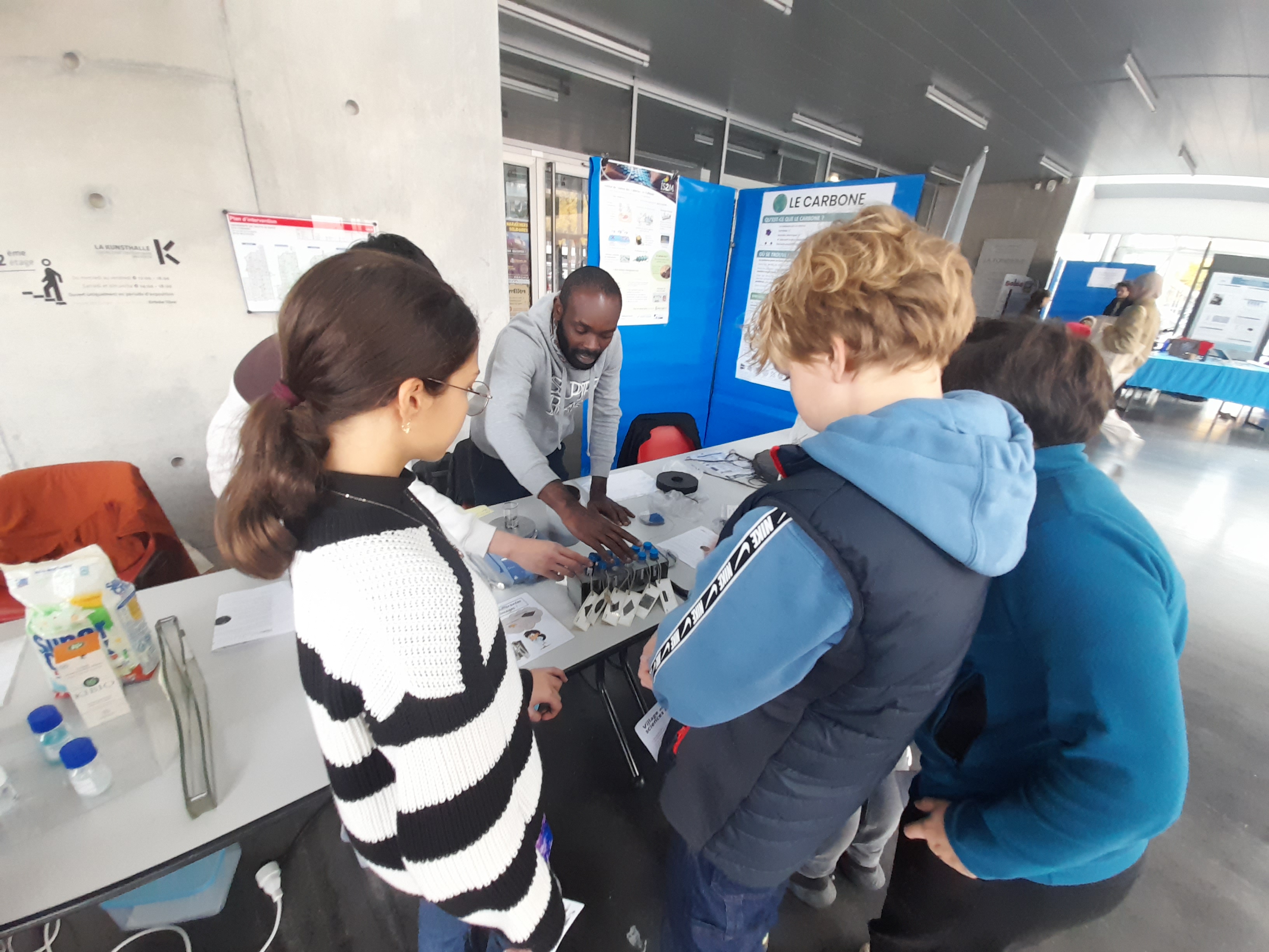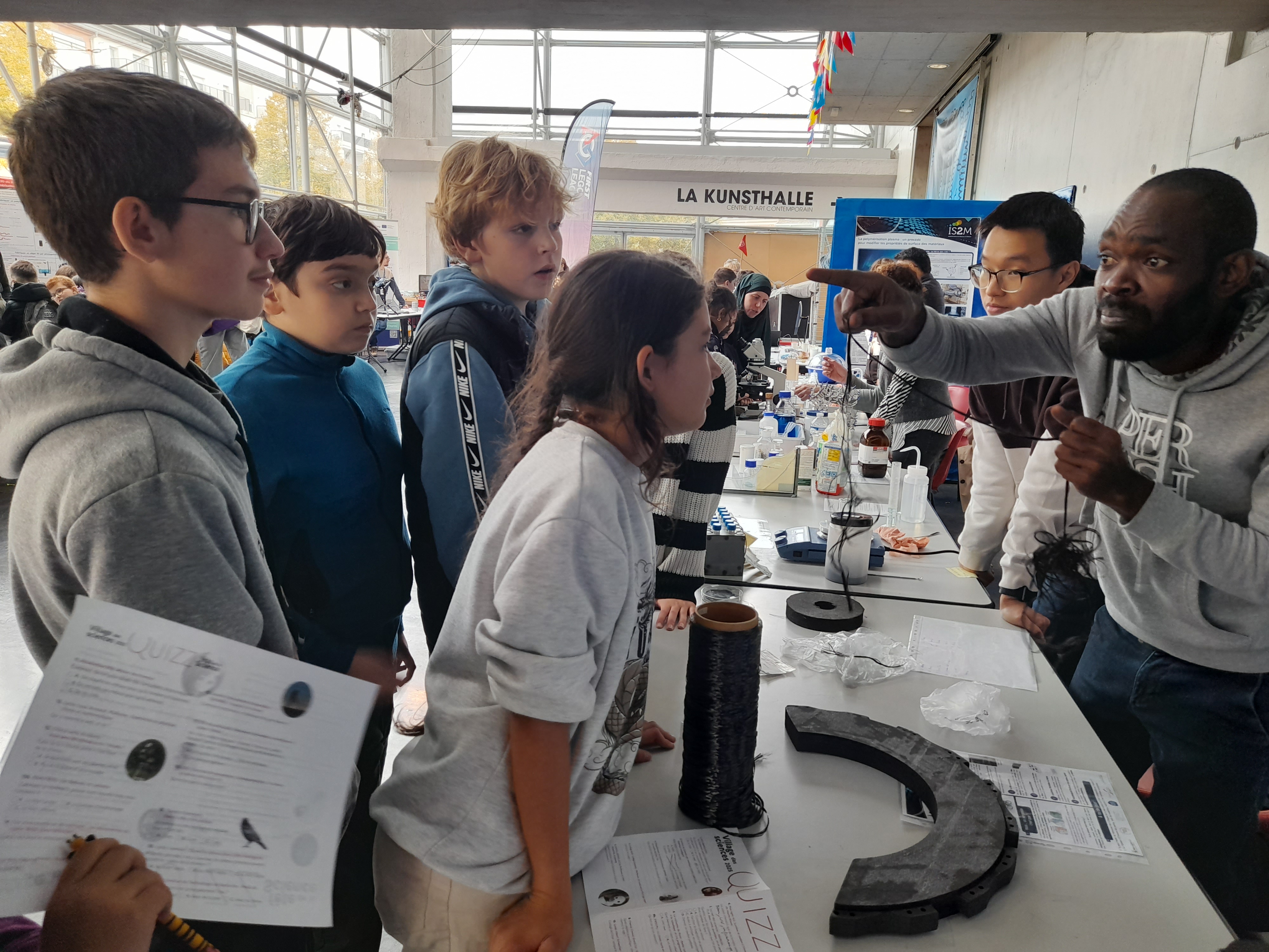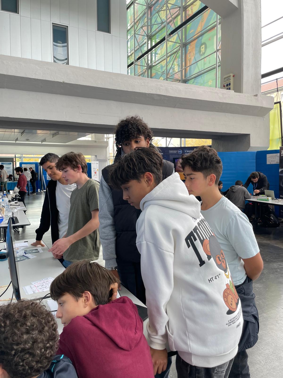 Une quinzaine d’élèves de différentes classes, accompagnés par M. Huntzinger, Mme Simonin et Mme Latscha, sont allés explorer quelques-uns des nombreux ateliers de la Fête de la Science, dans le bâtiment « cathédrale » de l’Université de la Fonderie. Pendant toute une après-midi, ce fut l’occasion pour eux d’expérimenter, de questionner et de se passionner pour les différents thèmes proposés : observations au microscope, astronomie, fabrication et utilisation de la fibre de carbone... mais aussi programmation et mondes virtuels.